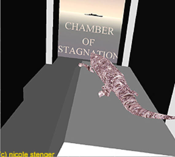 "CHAMBERS" is Stenger's second movie in the Virtual Reality TRILOGY, programmed in web-based VRML, it was also conceived for immersion.