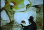 The goal of this project is an audio-visual interactive installation to explore the creative content and suggestions that the artificial life (alife) environments have in their potentialities. The suggestion the Plancton Art Studio wants to communicate is the evocation of an artificial society able to self-develop in the time and interact with the humans. The basic idea is to combine two different channels of interaction: biochemical and symbolic. The biochemical interaction is based on the idea that humans emit substances in the digital environment when they move in an interaction area. Depending by the type of substance, the digital creatures are attracted or not by the person. In the interactive installation, the image of the artificial world is projected on a 2D screen. The area for the human interaction consists in the area in front of the screen. To interact, a person has to enter in this area in order to produce modification in the artificial world. The interaction area is observed by video-cameras acquired in the computer. A tracking program detects people presence in terms of change detection in the image. This information is mapped as substances emitted by the real people in the digital dimension of the environment. The second step is to teach the creatures to hear the voice of the visitors (through microphones). They are able to identify and progressively learn words from the humans. (source: www.plancton.com)