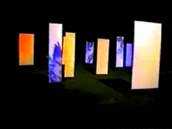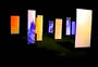 Von dieser Installation führte der Weg dann in "Goethes Garten" : angeret durch die Farbenlehre Goethes hatte Claudia Robles hier ein Ensemble von Paneelen errichtet, die in einem subtil erdachten Wechselspiel in unterschiedlichen Farben angestrahlt wurden und die Besucher einluden, durch ihre Bewegungen Farb-Schatten-Kompositionen auf den Paneelen zu schaffen.