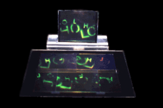 Types of holographic images used: computer holographic stereograms, reflection holograms, multicolor holograms, laser transmission holograms, integral holograms, pulsed holograms, white light holograms.