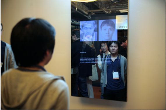 Mirror_Piece is a mirror version of Marnix de Nijs’ previous work Physiognomic Scrutinizer. Equipped with biometric video analyzing software, the installation scans facial features and characteristics of anyone looking into its mirror, and compares them to those of more than 250 preselected people in a database. The database includes a variety of famous individuals and contributors to our contemporary culture, all chosen because of their controversial or infamous acts. A computerized voice publicly announces the name of the person each viewer has been identified as, in a confrontational reminder that the steady increase in the use of biometric technology in public space should be viewed with a healthy skepticism.