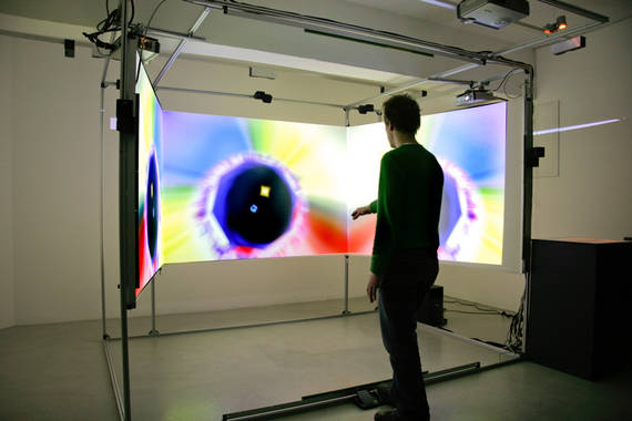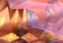 As in all parts of the work n o w h e r e one will also be able to discover a crystal here, in whose faceting the cosmos is reflected in its entirety. This crystal functions as a transition like a wormhole - as a link up to the starting point. Crystal, an important form to which not only our protagonists related, penetrated by light, unifying outside and inside, simultaneously form and spirit, an inorganic material growing similarly to a biological organism, is penetrable in n o w h e r e - a relationship of reciprocal transmissions and penetrations of form just as of meaning. And - as if one were inside a multi-faceted macrocosmos - the polygons that delineate the inside become an immersive kaleidoscope.