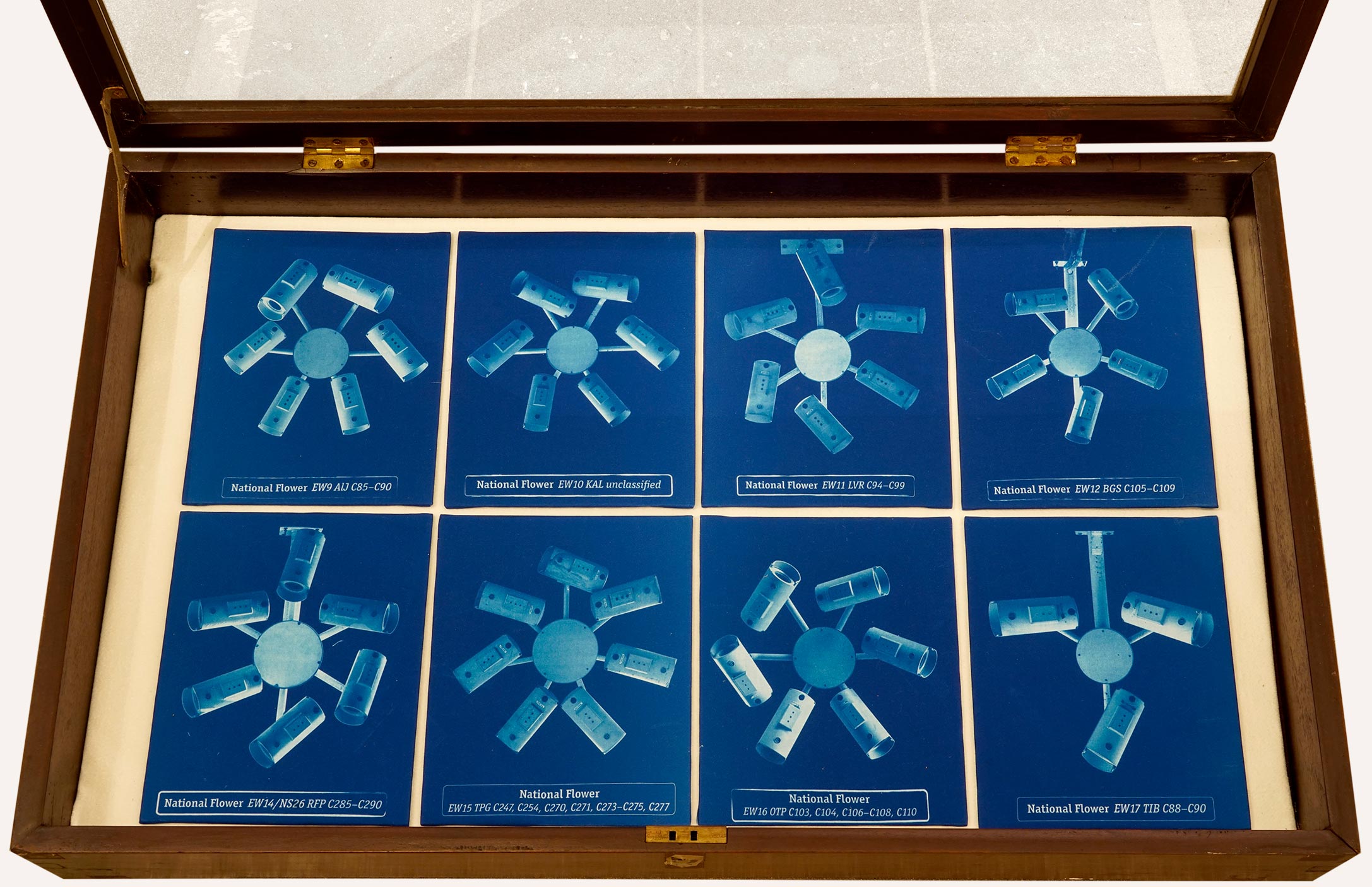 © 2021, Elke Reinhuber, VG-Bild-Kunst, Bonn; Cyanotypes of National Flower at Future Memories, Singing Waves gallery, Hong Kong