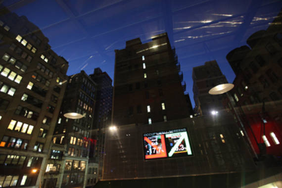 Playing on familiar visual symbols from the financial world such as stock tickers and Bloomberg-style news programs, “Occupy Wall Screens” portrays the quotidian in a new light.
