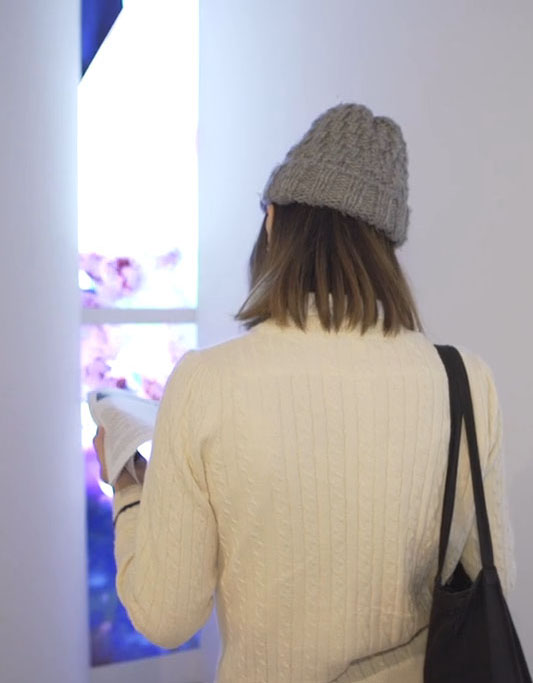 Snow Yunxue Fu: Pro, 04-10-2016, in: Archive of Digital Art Pro is a video installation that reveals the simulated virtual environments within the structure of 2 curved while walls. Relating to the vertical framing motif of Chinese traditional landscape painting, Pro invites the viewer into a familiar but also un-known space of digital hyper-reality.