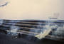 In Smokescreen a row of smoke canisters along the whole front side of the Swansea University created a thick smoke-screen behind which the building completely disappeared for a while. Portions of this smoke-screen were white, yellow and black.
