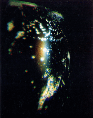 Images of stars and galaxies are displayed as pixels of light whose structure is randomized by computer processing. These are projected onto a large curved metal sheet whose galvanized surface reflects the light to create an intangible space of scintillating light points.