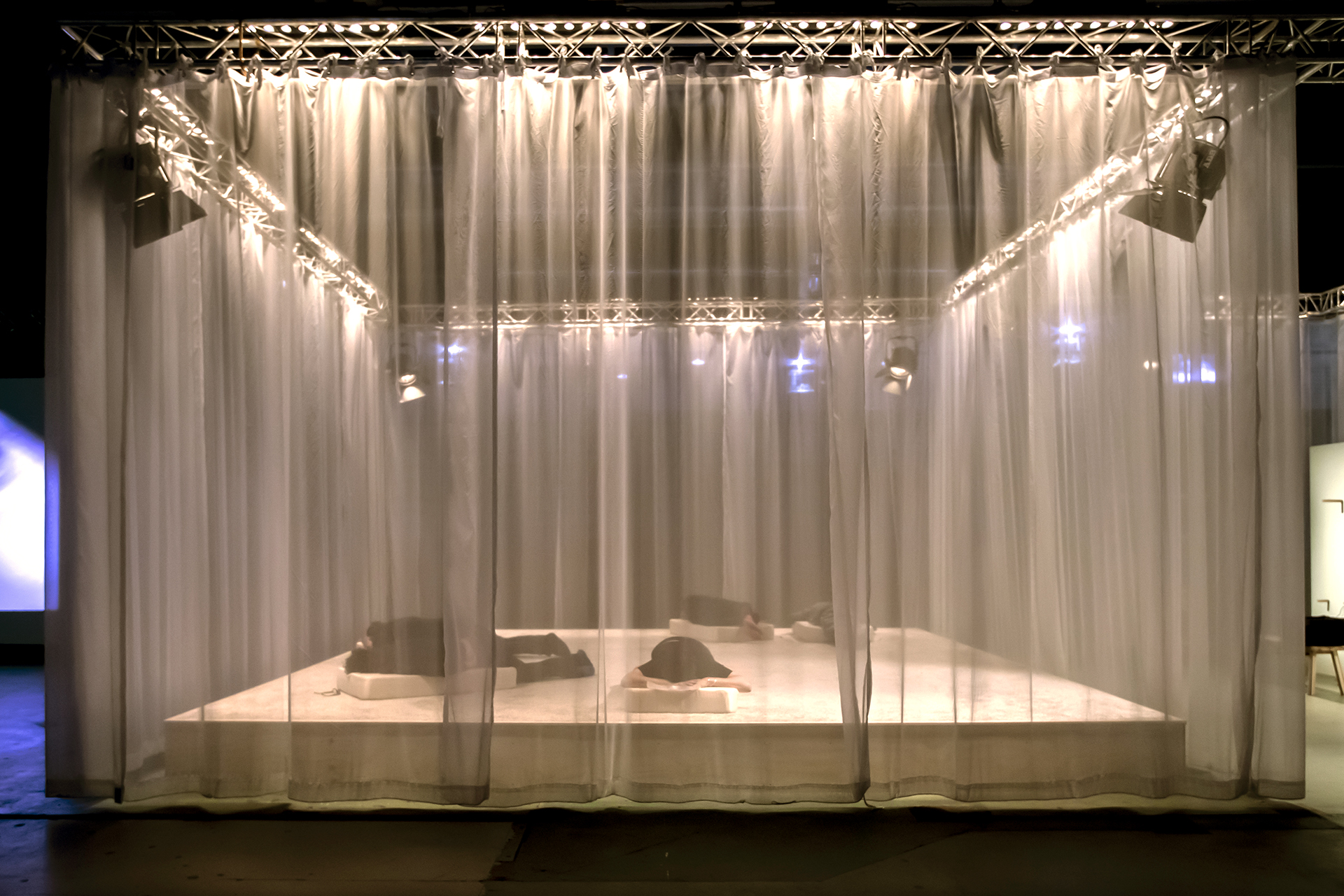 Lauren Lee McCarthy: Waking Agents, 07-06-2021, in: Archive of Digital Art In the age of smart everything, even the personal space of sleep is invaded. The installation consists of a set of six pillows in an immersive environment. Visitors are invited to lay down and nap with a “smart” pillow, attended to by its embedded intelligence. The intelligence serves as guide, companion, and caretaker while the user drifts between awareness and unconsciousness. Unbeknownst to the visitor, each pillow is driven by a human performer serving as intelligent attendant.